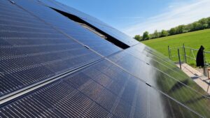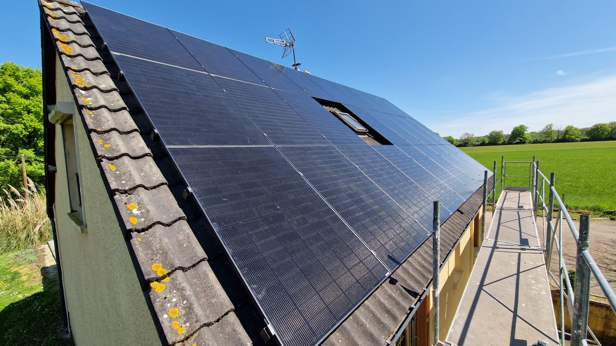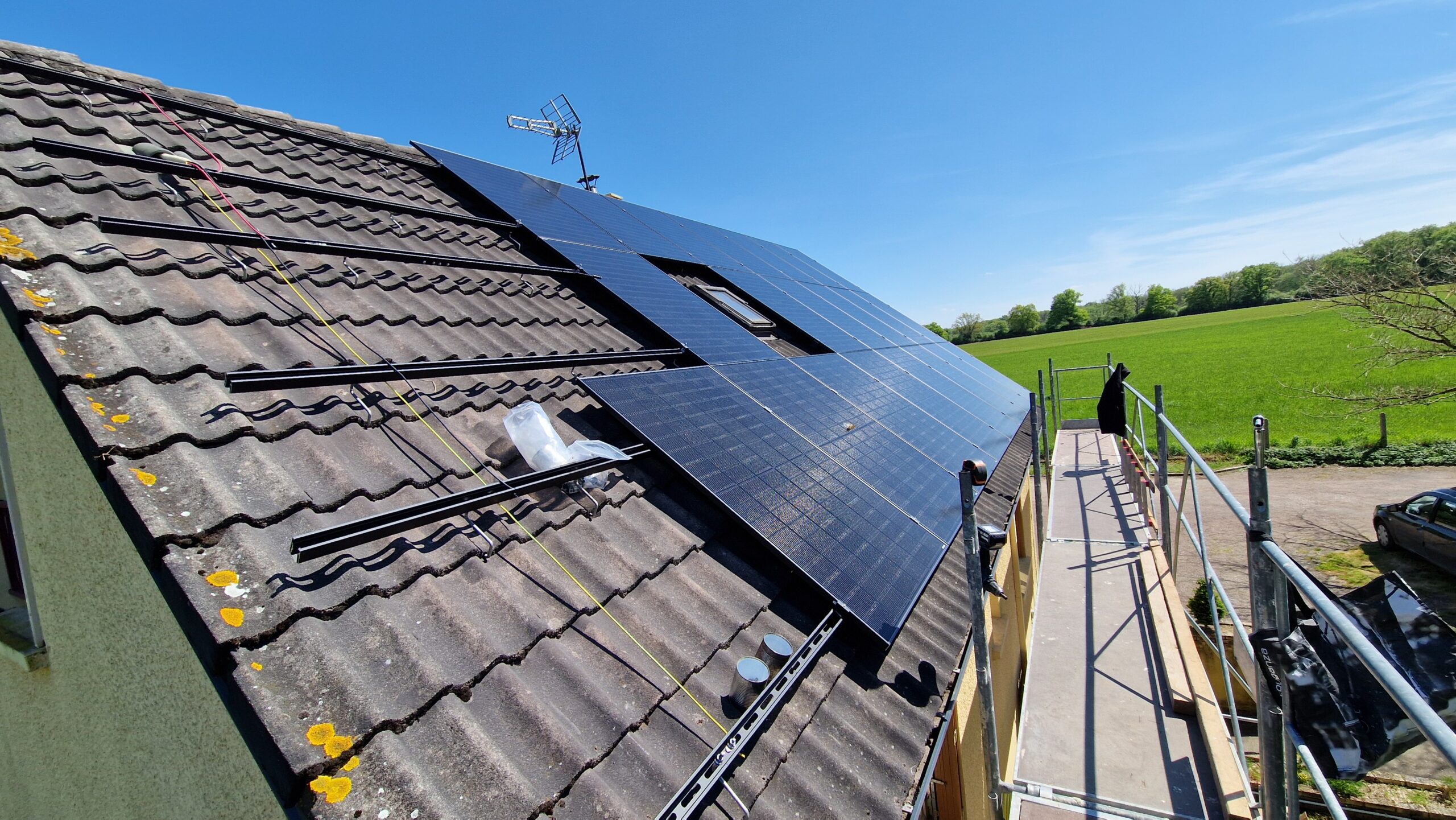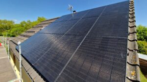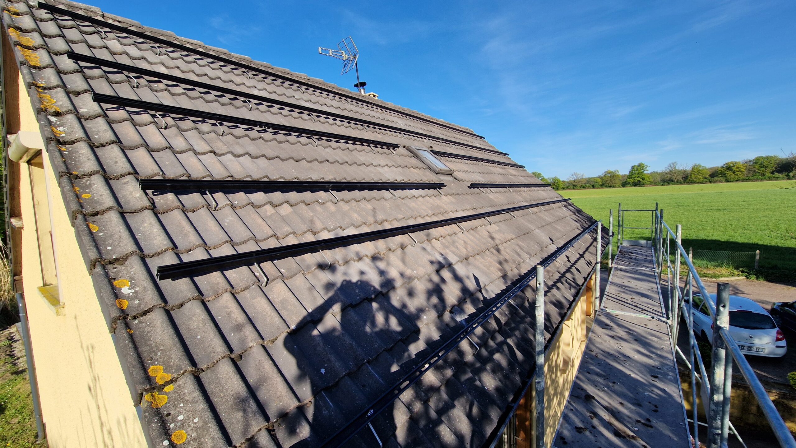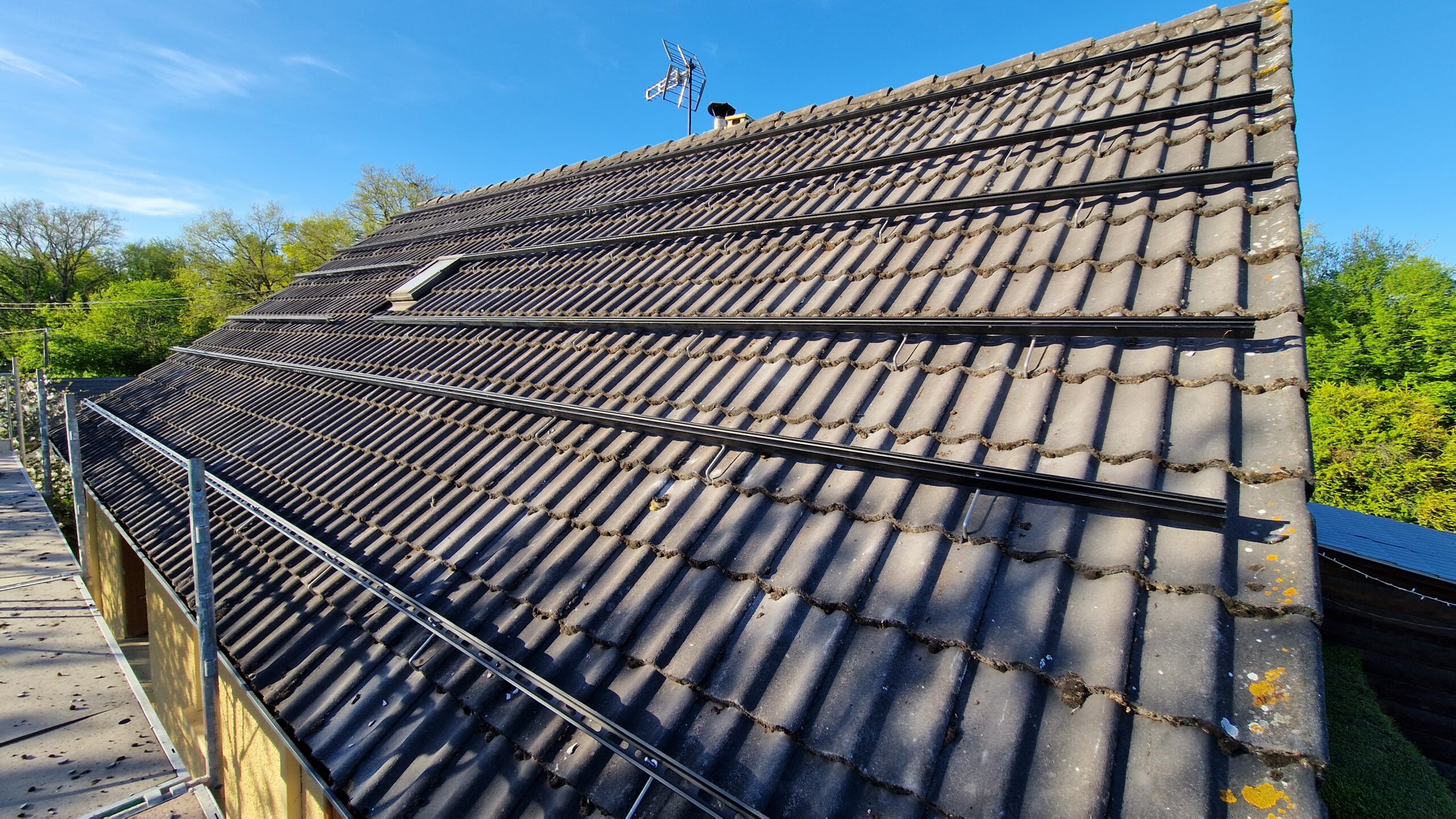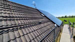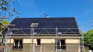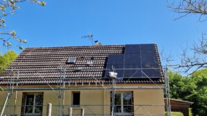 Installation photovoltaïque sur bâtiment d’habitation en tuiles mécaniques.